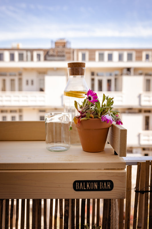 Je kan er ook voor kiezen om de Balkonbar aan de kopse kanten af te sluiten met de Balkonbar zijkantjes. Deze zijn beschikbaar in dezelfde hout en kleurvariaties als de Balkonbar.