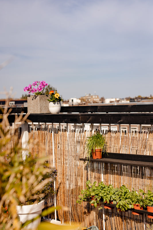 De Balkonbar wordt midden op de reling geplaatst en steekt daardoor ongeveer 15 cm aan weerszijden uit. Door de opstaande rand wordt het omvallen van objecten zoveel mogelijk tegengehouden, maar wees altijd voorzichtig. Je kan er ook voor kiezen om de Balkonbar aan de kopse kanten af te sluiten met de Balkonbar zijkantjes.