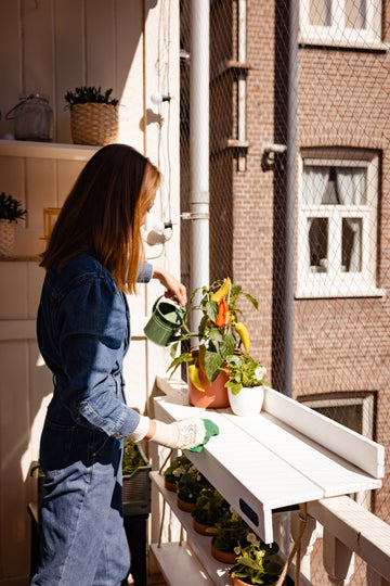 De Balkonbar wordt midden op de reling geplaatst en steekt daardoor ongeveer 15 cm aan weerszijden uit. Door de opstaande rand wordt het omvallen van objecten zoveel mogelijk tegengehouden, maar wees altijd voorzichtig. Je kan er ook voor kiezen om de Balkonbar aan de kopse kanten af te sluiten met de Balkonbar zijkantjes (link invoegen).